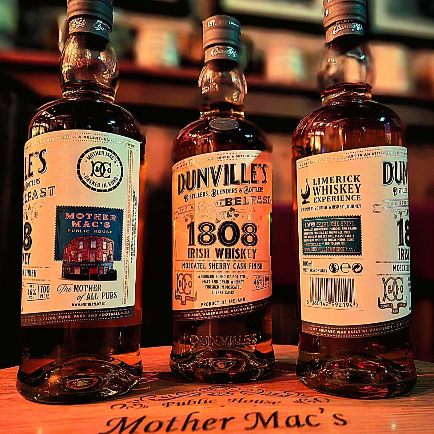 ![IMG-20251121-WA0020[1] Dunvilles Celebrate a decade of history with the exclusive Dunville’s 1808 Irish Whiskey, crafted in partnership with our great friends at Dunville’s. This 46% ABV blend of Pot Still, Malt, and Grain whiskey is finished in rich Moscatel sherry casks, delivering fruity, floral sweetness with notes of honey, toffee apple, golden syrup and a warm white-pepper kick. A Mother Macs–only release from the Casked in Bond Series.](https://mothermacs.ie/wp-content/uploads/2025/11/IMG-20251121-WA00201.jpg)